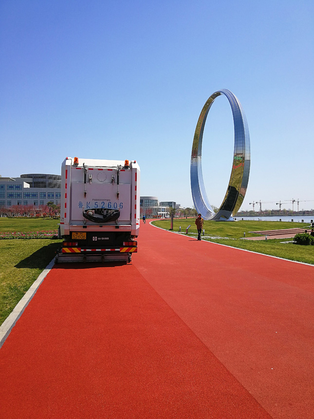 2018年4,山東省榮成市,“海山颶風(fēng)牌”重型道路污染清除車等大型高壓清洗車、清掃車對賽道進(jìn)行深度洗掃,大幅度提高“榮馬”賽道的潔凈度,向全世界跑友展示了中國最高顏值馬拉松賽道。