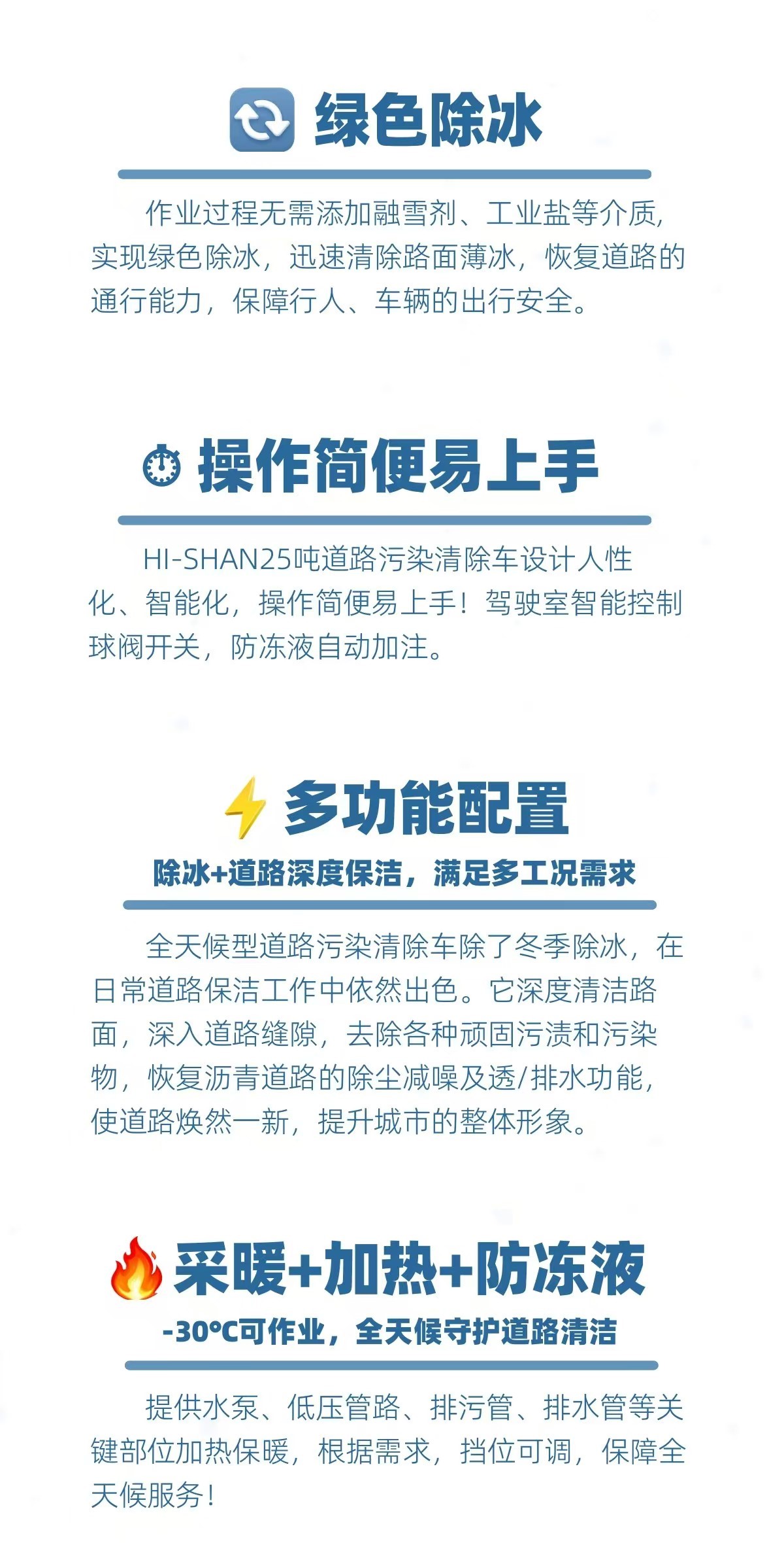 相關(guān)信息請詳看福建海山機械公眾號文章:“無畏寒冬:全天候!除冰型!HI-SHAN25噸道路污染清除車”