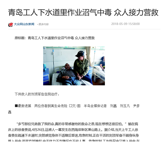 【青島】工人下水道作業(yè)中毒