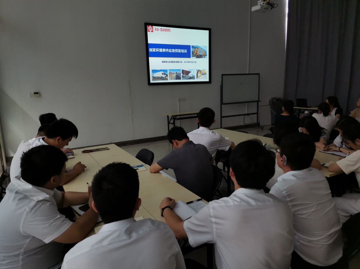 為了確保應(yīng)急預(yù)案的有效執(zhí)行,我司(福建海山機(jī)械股份有限公司)按計(jì)劃于2023年05月23日下午15:00-16:00組織應(yīng)急組織機(jī)構(gòu)人員開展《突發(fā)環(huán)境事件應(yīng)急預(yù)案》培訓(xùn),培訓(xùn)過程照片如下: