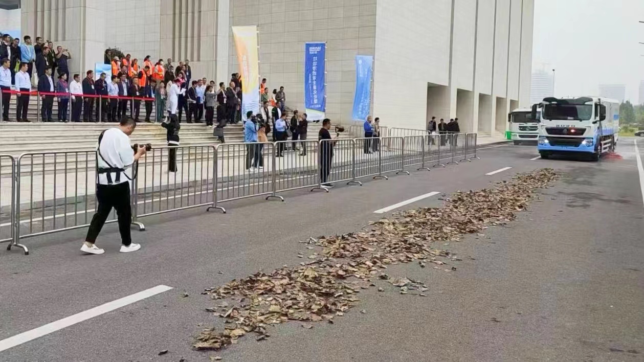 ▲18T多功能道路污染清除車超強(qiáng)的落葉收集功能,優(yōu)質(zhì)的作業(yè)效果,讓現(xiàn)場的嘉賓連連稱贊