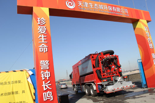 This operation is a reform to the traditional construction method of joint operations by road sweeper, sprinkler, and other cleaning equipments. One single suction excavator finished all tasks, with its performance confirming to the environment-protection requirements. Compared to traditional operation methods, the suction excavator enhances efficiency by five times, meanwhile leaving a clean road.